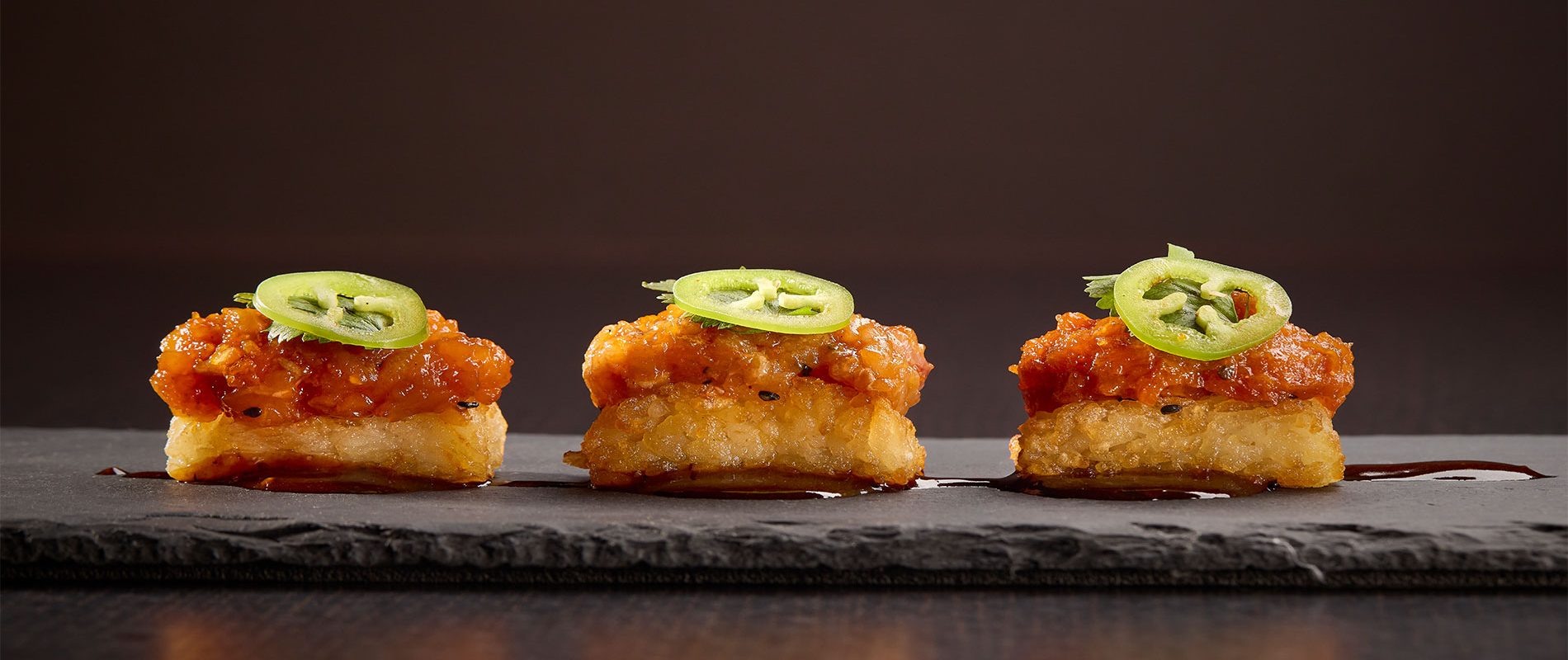 Crunchy sesame sushi rice, jalapeño, cilantro, drizzled with black pepper soy sauce.